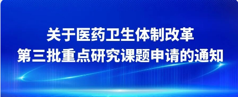根据工作需要,受国家卫生健康委体制改革司委托,学会组织开展医药卫生体制改革第三批重点研究课题申请工作。
